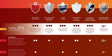 Like tint, there are options when it comes to PPF. For those who wish to Armor their vehicles with the glossiest most hydrophobic film, Valor would be our recommendation. This protective film comes backed with a 12 year warranty. Valor is by far one of the most pristine films, no ceramic coating necessary.